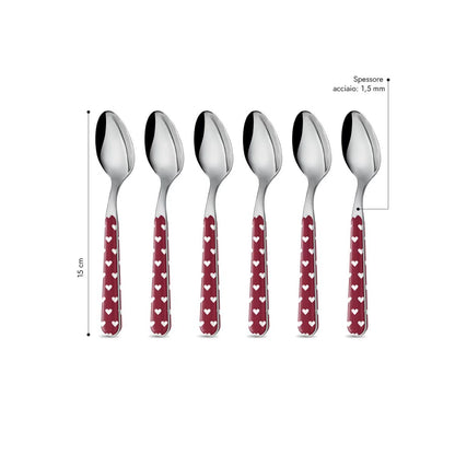 6 Cucchiaio Caffè - Cuoricini Rosso BD14060R