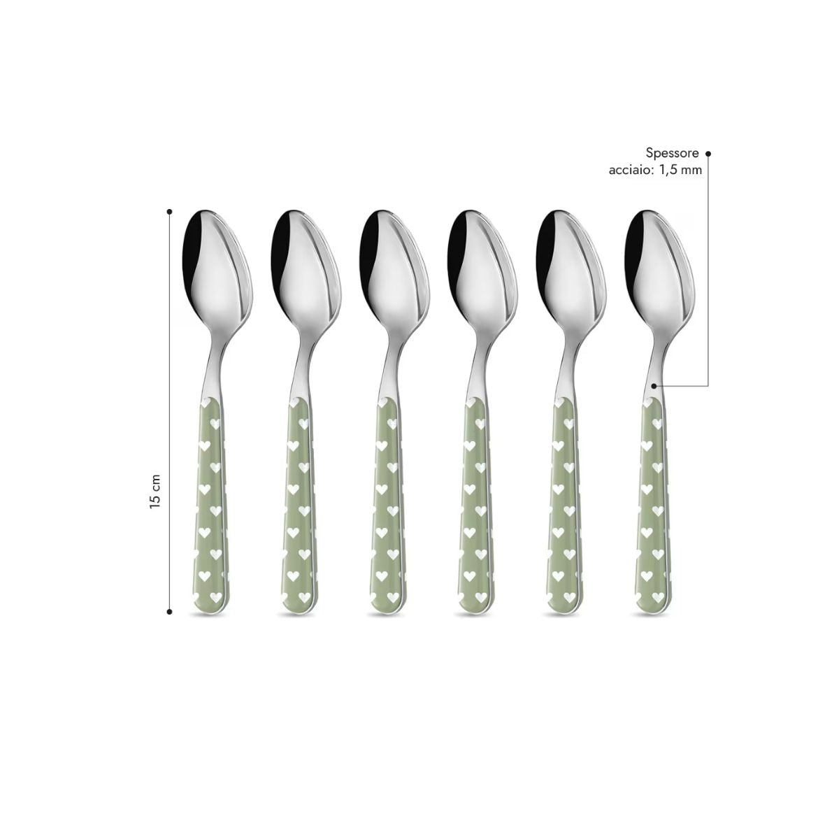 6 Cucchiaio Caffè - Cuoricini Verde Salvia BD14060PSG