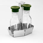 Con ‘Passami il sale’, Serafino Zani prosegue la ricerca su un uso contemporaneo dell'acciaio come materiale del quotidiano, solido e duraturo ma allo stesso tempo garbatamente elegante, questi prodotti raccontano in modo inconsueto tipologie quotidiane del panorama domestico: il vassoio, il cestino, le posate da insalata. Il linguaggio minimale di Konstantin Grcic reinterpreta l'acciaio attraverso geometrie basiche, asimmetrie e tagli netti, come origami metallici di estrema semplicità, capaci di fare sentire la mano di chi li ha realizzati.