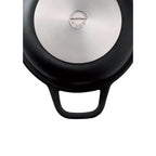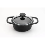 Casseruola diametro 16 cm con coperchio in vetro temperato. Design Ettore Sottsass. Realizzata in fusione di alluminio con rivestimento antiaderente di alta qualità, molto resistente. Si caratterizza per i larghi profili e gli alti e generosi spessori del materiale. Le maniglie sono state disegnati per facilitare la presa, grazie alle loro dimensioni importanti e alla forma ergonomica. Tutti i pezzi sono dotati di uno speciale fondo termodiffusore che permette il loro uso su tutte le fonti di calore: gas, piastra elettrica, vetroceramica ed induzione. PFOA free, PFOS free.