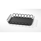 | Centrotavola / porta frutta cm 46,5 x 26 x 6 h. in metallo con rivestimento nero ‘soft touch’ anti graffio. Con Giocorotondo tutto diventa trama sottile per contenere, portare, decorare. |