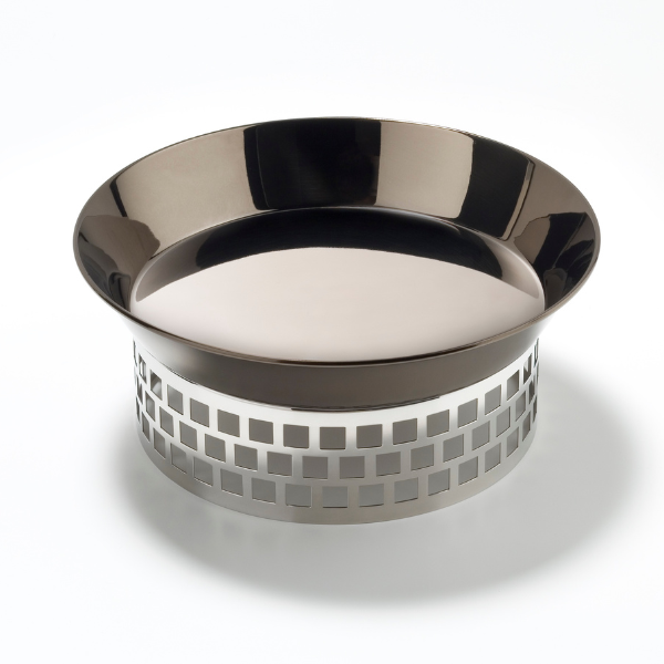 “Offerta” prosegue la ricerca che Sottsass ha condotto con Serafino Zani sulla riscoperta delle forme della tradizione quotidiana secondo linguaggi attuali, a partire da un materiale concreto e duraturo come l'acciaio. Un acciaio che in “Offerta” diventa prezioso nell'accostamento inconsueto con il vetro dell'alzata “Tuareg” e in quello fra lucido e brunito di “Offerta Frutta”.