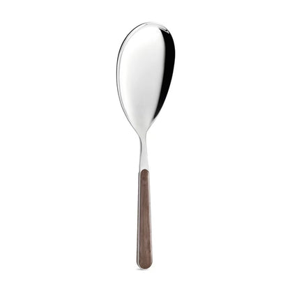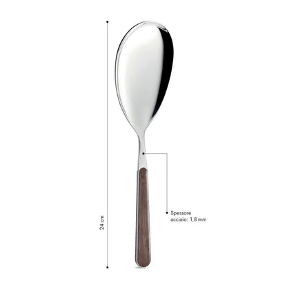 Acciaio inossidabile e manicatura decorata in sublimazione indelebile effetto legno, garantita al lavaggio in lavastoviglie.