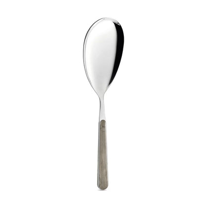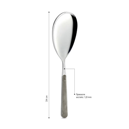 Acciaio inossidabile e manicatura decorata in sublimazione indelebile effetto legno, garantita al lavaggio in lavastoviglie.
