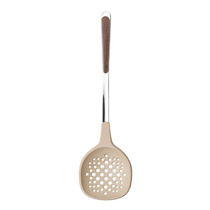 Acciaio inossidabile e manicatura decorata in sublimazione indelebile effetto legno, garantita al lavaggio in lavastoviglie.