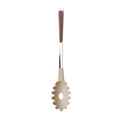 Acciaio inossidabile e manicatura decorata in sublimazione indelebile effetto legno, garantita al lavaggio in lavastoviglie.