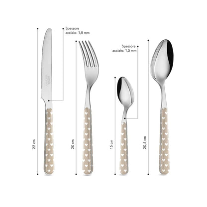 Una tavola dolce e romantica, in perfetto stile Shabby Chic. La linea “Cuoricini” prodotta da Neva Posateria Creativa è disponibile in quattro colori pastello di grande tendenza.